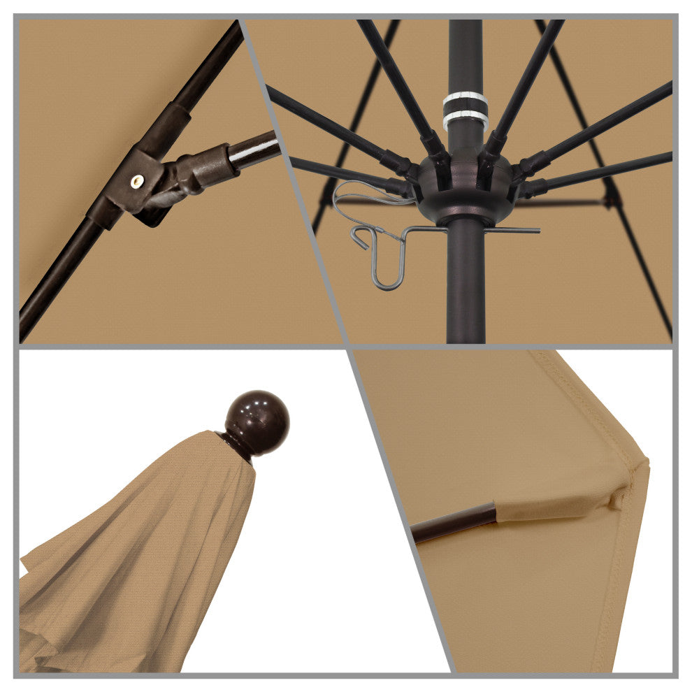 7.5' Bronze Push Lift Fiberglass Rib Aluminum Umbrella, Olefin, Champagne