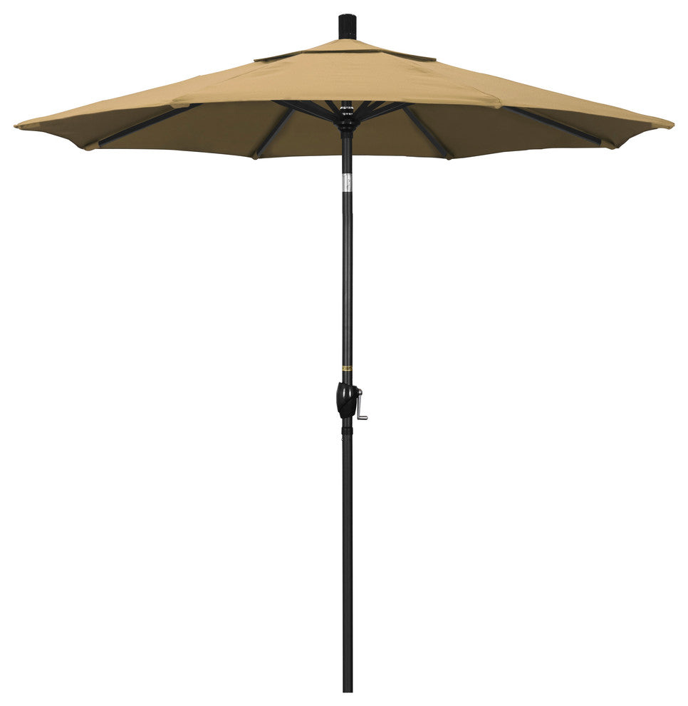 7.5' Matted Black Push-Button Tilt Crank Aluminum Umbrella, Champagne Olefin