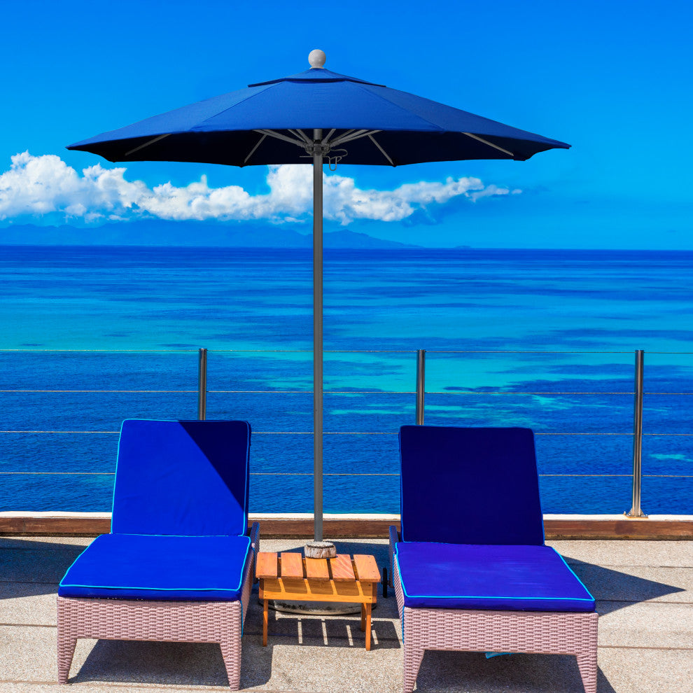 This heavy duty top seller 7.5 foot commercial grade umbrella offers all the features a residential or commercial owner demand with a robust, commercial grade aluminum frame. The two-section aluminum pole with a 0.08 inch wall thickness and fiberglass rib framework has superior stability and is perfect for demanding commercial conditions. The strong aluminum pole frame is matched by a simple and efficient manual push lift system, which compliments a resilient and easy to use umbrella. This umbrella also features Sunbrella fabrics, which are built on a foundation of solution-dyed acrylic yarn, the most resilient and solid material for prolonged sun exposure, to offer even longer color retention rating than competing material sources.