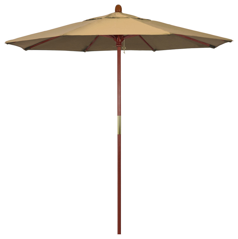 The classic look of a traditional wood market umbrella by California Umbrella is captured by the MARE design series. The hallmark of the MARE series is the beautiful 100% marenti wood pole and rib system. The dark stained finish over a traditional marenti wood is perfect for outdoor dining rooms and poolside d-cor. The deluxe push lift system ensures a long lasting shade experience that commercial customers demand. This umbrella also features Olefin fabrics, which are made with high durability synthetic Olefin fibers that offer improved fade resistance over lesser grade fabric materials like polyester and cotton.Product Features-Olefin Fabric-7.5- size canopy-High durability resin hub-8 marenti wood ribs-Durable 1.5" marenti wood pole-Deluxe push lift system-Base sold separately
