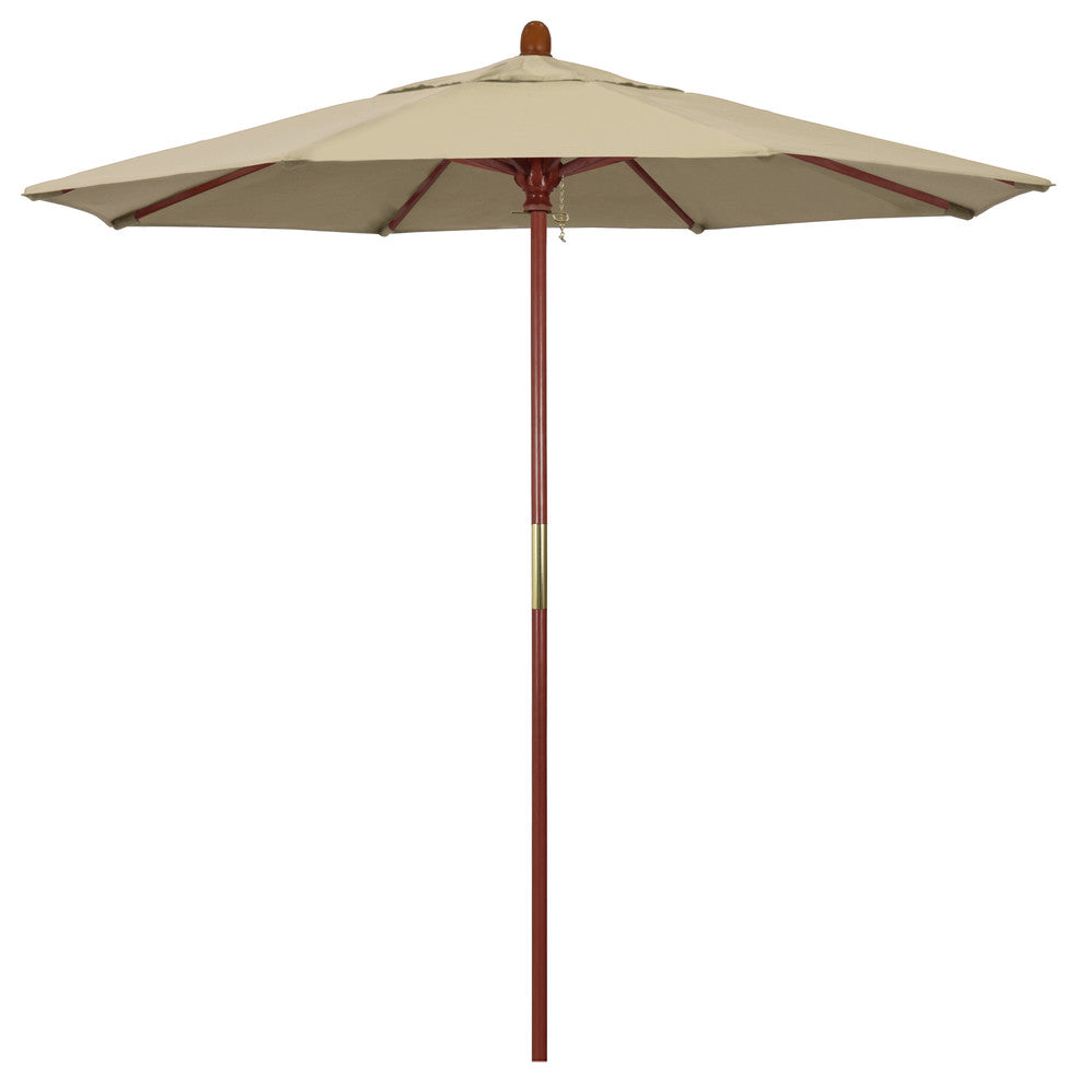 The classic look of a traditional wood market umbrella by California Umbrella is captured by the MARE design series. The hallmark of the MARE series is the beautiful 100% marenti wood pole and rib system. The dark stained finish over a traditional marenti wood is perfect for outdoor dining rooms and poolside d- cor. The deluxe push lift system ensures a long lasting shade experience that commercial customers demand. This umbrella also features Sunbrella fabrics, which are built on a foundation of solution-dyed acrylic yarn, the most resilient and solid material for prolonged sun exposure, to offer even longer color retention rating than competing material sources.Product Features''sunbrella Fabric- 7.5- size canopy- High durability resin hub- 8 marenti wood ribs- Durable 1.5" marenti wood pole- Deluxe push lift system- Base sold separately
