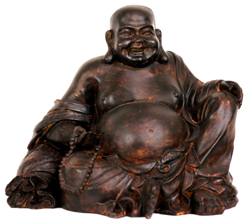 This is a large and substantial Lucky Buddha statue. Called Budai in Chinese, Hotei in Japanese, this happy looking man is thought to have been an actual 10th century Zen Buddhist monk. He''s believed to have been an unusual, unique Zen figure in that happiness, generosity, and good cheer were central to his teaching. People who have this "Laughing Buddha" statue love the rich dark, faux bronze finish, the happy face, the long ear lobes, and big, big, bellies; But the most important part of a Lucky Buddha statue is the magic bag of plenty under his elbow - It never ever runs out.Large, heavy, substantial version of the "Laughing Buddha"Beautiful faux antiqued bronze finish, with prayer beads and bag of plentyMakes a wonderful gift for business associates, siblings, and parentsThought to bring good luck, happiness, cheer, and wealth