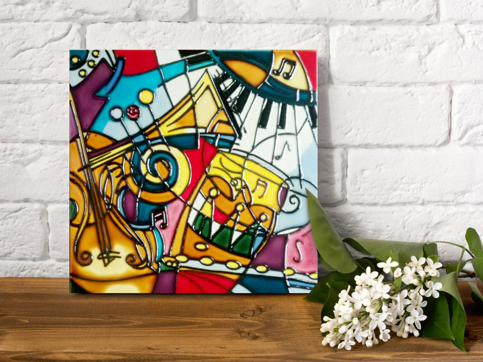 8x8" Music Pattern Ceramic Art Tile Hand Painted Trivet Hot Plate