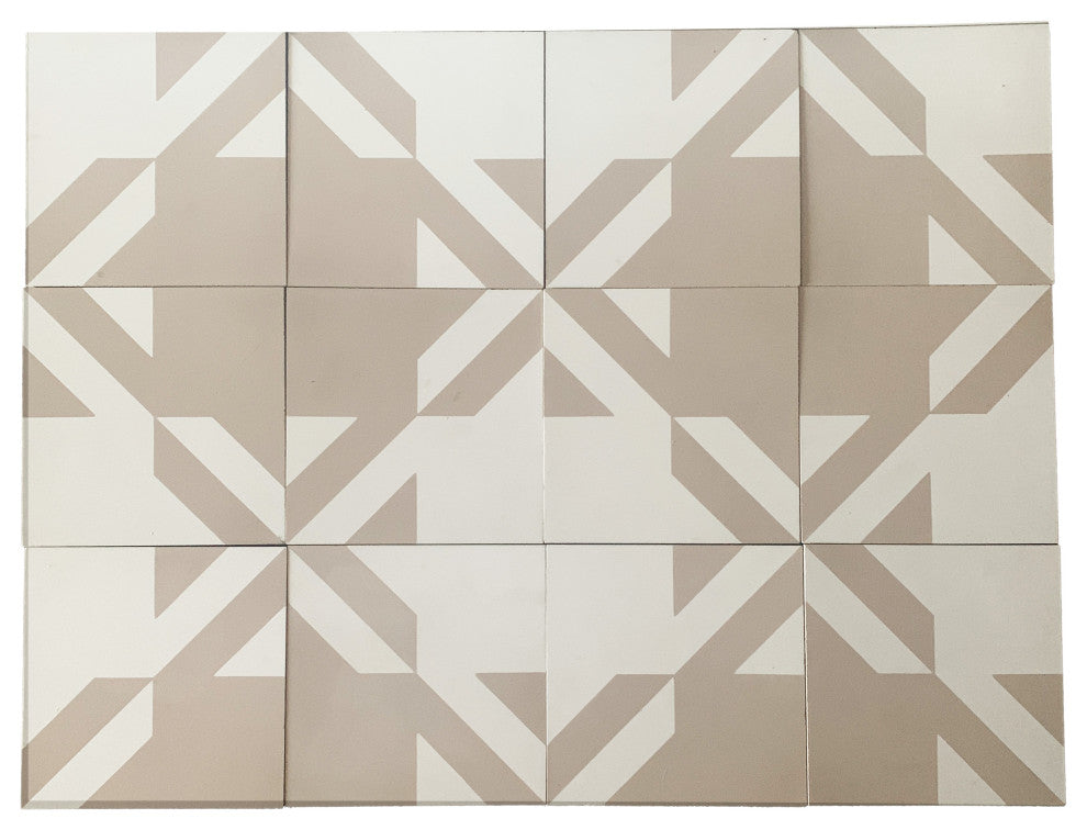 8"x8" Tantan Handmade Cement Tile, Tan/White, Set of 12