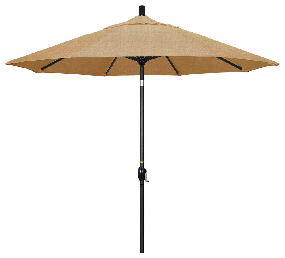This traditional 9 foot California Umbrella market style offers the residential owner a beautiful market design without taking over their space. The aluminum frame has a simple crank to open and push- to- tilt design. The push-button tilt style keeps the tilt feature and the user-friendly, crank-to-open feature separate within the frame which adds to the umbrella-s longevity. Owners can simply crank open their umbrella and push a button to tilt canopy towards the sun. This umbrella also features Sunbrella fabrics, which are built on a foundation of solution-dyed acrylic yarn, the most resilient and solid material for prolonged sun exposure, to offer even longer color retention rating than competing material sources.