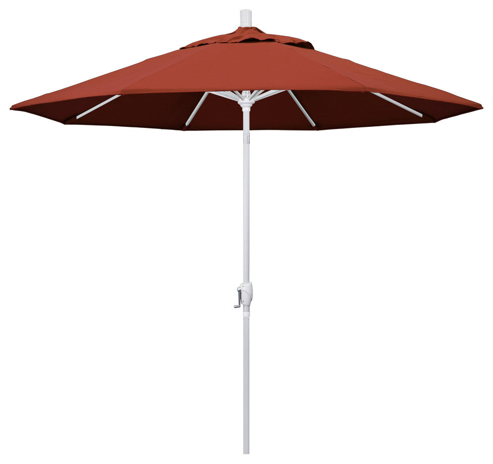 This traditional 9 foot California Umbrella market style offers the residential owner a beautiful market design without taking over their space. The aluminum frame has a simple crank to open and push- to- tilt design. The push-button tilt style keeps the tilt feature and the user-friendly, crank-to-open feature separate within the frame which adds to the umbrella-s longevity. Owners can simply crank open their umbrella and push a button to tilt canopy towards the sun. This umbrella also features Sunbrella fabrics, which are built on a foundation of solution-dyed acrylic yarn, the most resilient and solid material for prolonged sun exposure, to offer even longer color retention rating than competing material sources.