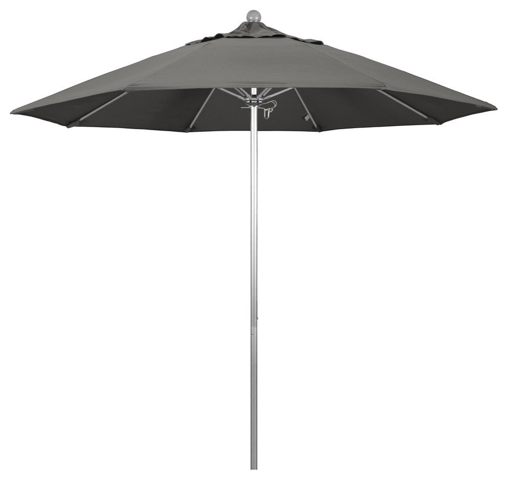 9' Fiberglass Umbrella Pulley Open Silver Anodized, Sunbrella, Charcoal