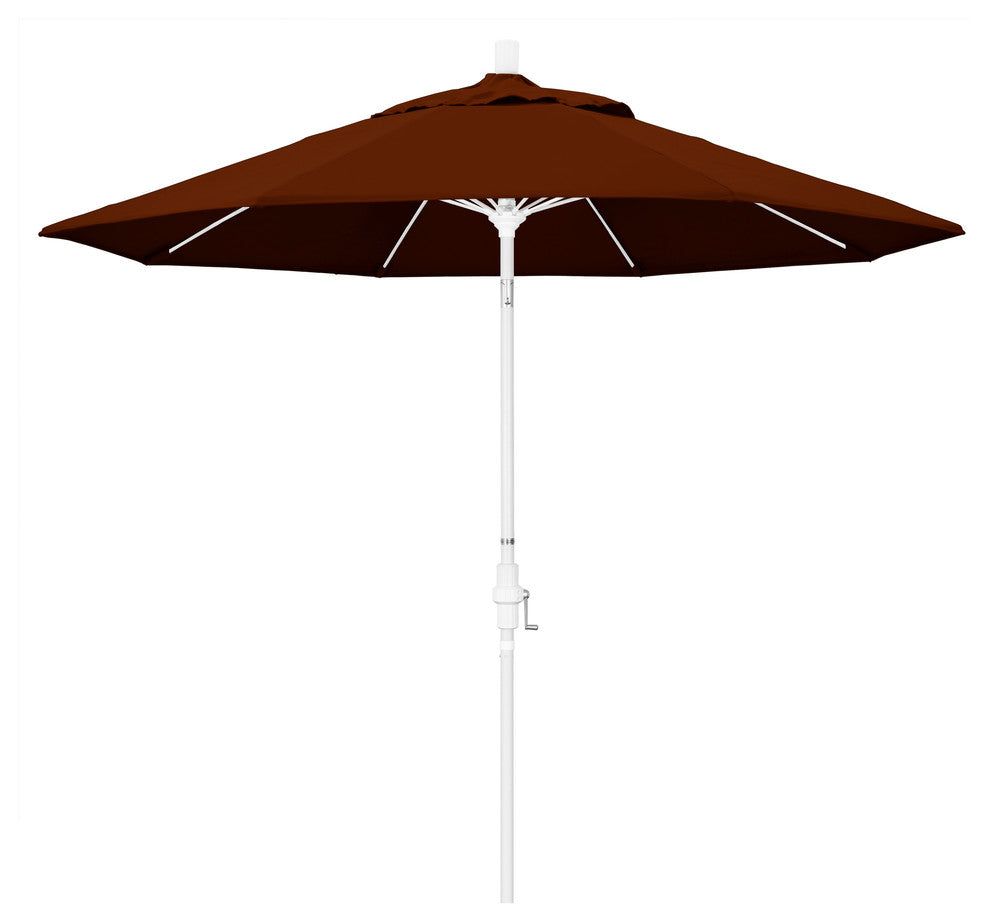9' Matted White Collar Tilt Crank Aluminum Umbrella, Pacifica, Brick