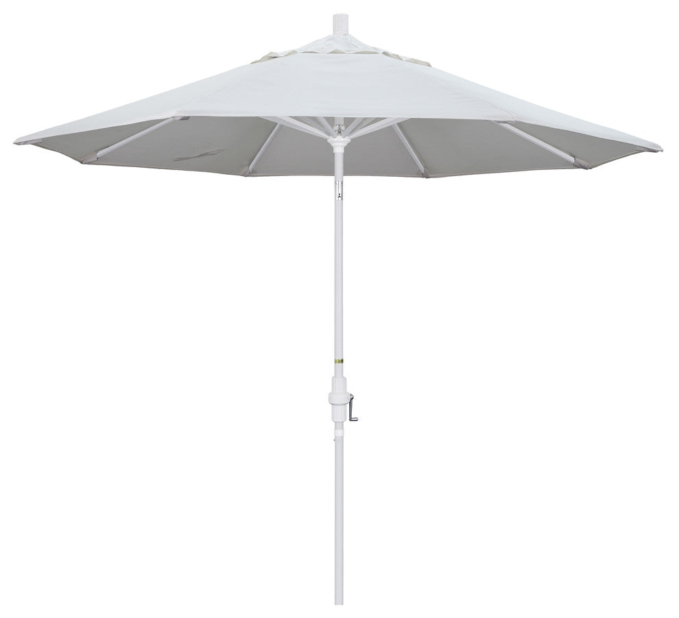 9' Matted White Collar Tilt Crank Lift Aluminum Umbrella, Sunbrella, Natural