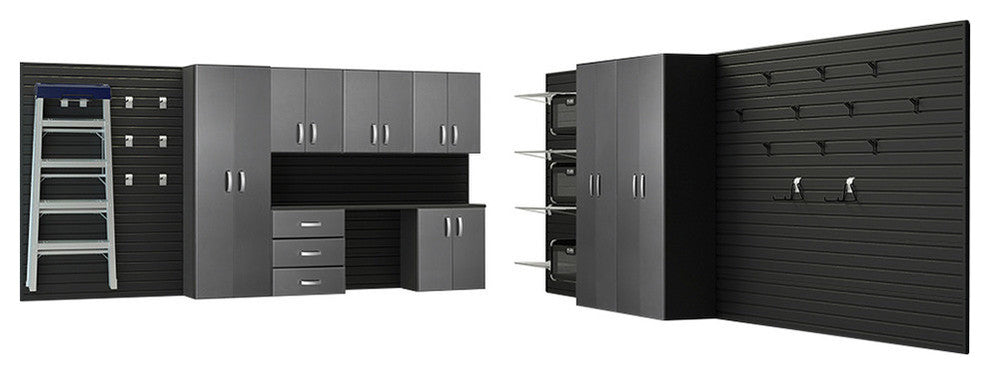 9 Piece Deluxe Cabinet Set Garage Organization System, Black and Silver