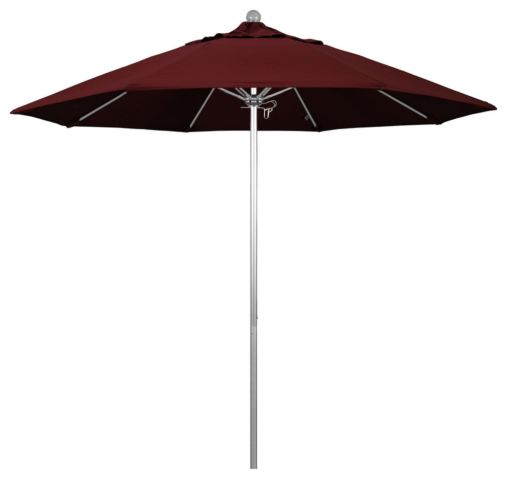 9' Silver Anodized Push Lift Fiberglass Rib Aluminum Umbrella, Pacifica, Burgund