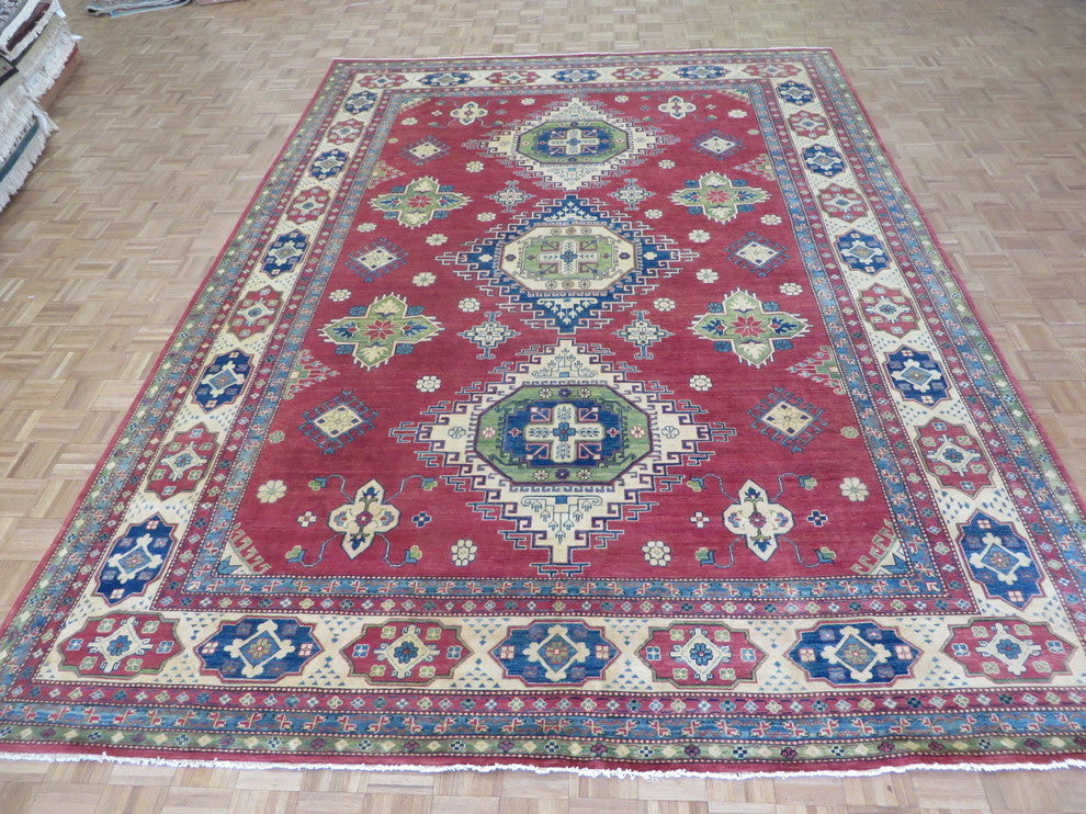 9'10x13'7 Hand Knotted Rust Red Kazak Oriental Rug Vegetable Dyed