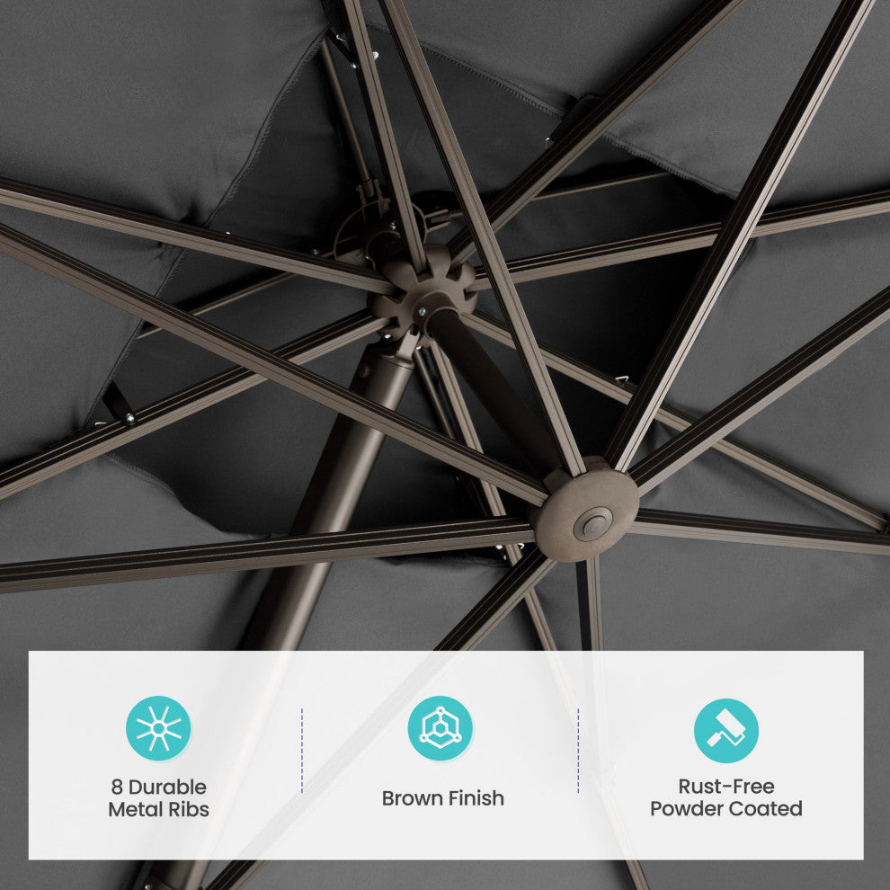 9X 11ft Patio Square Double Top Offset Umbrella Deluxe Cantilever Umbrella, Dark Gray