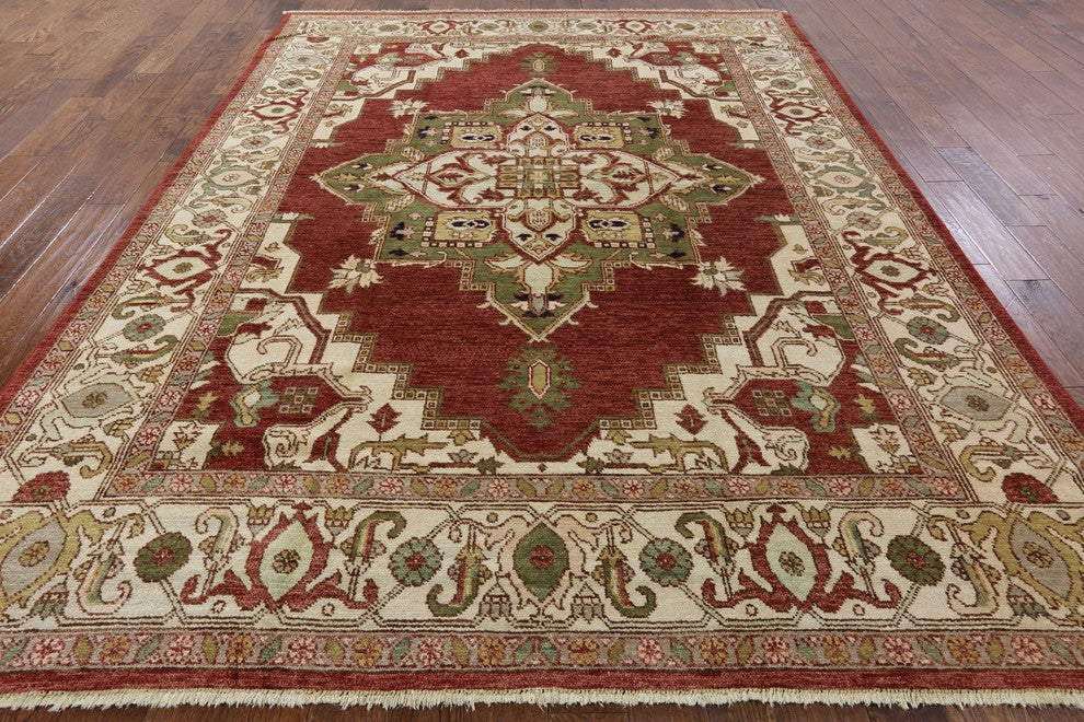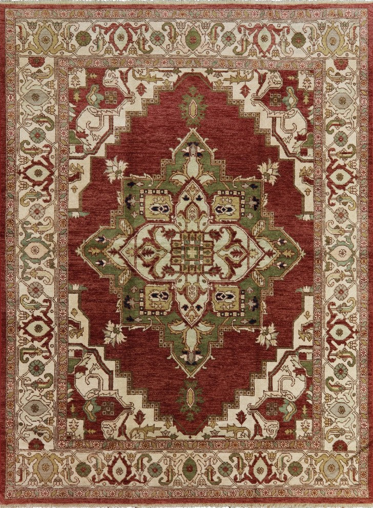 "Heriz is situated in the northwestern part of Iran (Persia). Though the term covers Hand knotted rugs of numerous small villages in the area, the most beautiful Rugs were woven in Heriz itself For the last 100 years, the Heriz carpet designs have basically remained the same, with only small variations in color pallets and density of the design. The late 19th Century Rug (so called Serapis) was of fewer details and softer colors and with time designs became denser with added jewel tone color pallets. The revival of the carpet industry in the late 19th Century was based on the demand of the Western markets, with America in particular. Weavers in Heriz hand knotted were asked to make carpets inspired by the Fereghan Sarouks of higher cost for consumers of more limited budgets. Even though Sarouk carpets changed style later on, Heriz weavers stayed with the geometric pattern till now. However, Heriz was also a center of production of some of the best handmade carpets with both geometric and curvilinear floral patterns. A special heirloom wash produces the subtle color variations that give rugs their distinctive antique look. "