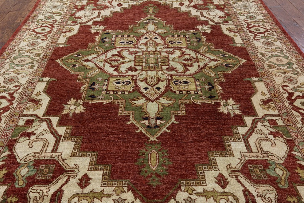 9'x11' Turkish Double Knotted Red Heriz Serapi Hand Knotted Wool Area Rug H8164