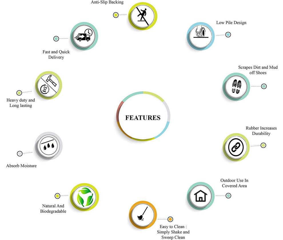 Keeps your floor clean when you decorate your entryway with this contemporary door mat, which includes a sturdy rubber backing to help keep the rug in place and prevent slips. The attractive design of this rubber door mat creates a welcoming entrance for your guests, and the durable coir material holds up to lots of foot traffic. Recommended for outdoor use in covered areas. Vacuum or Shake the mat regularly for longer life.-100% NATURAL COCONUT COIR FIBER - Natural fiber face provides the perfect surface for guests to wipe their shoes before entering your home.-ARTISANS HAND CREATED DECORATIVE DESIGN - Depiction Of An Oak US National Tree Which Adds a unique touch to your front or back door while being very functional.-PLACE BEFORE EVERY EXTERIOR DOOR - Use on a Front or Back Door, patio, in a garage, Any Other entryway and anywhere there is high traffic from outside. Use in covered outdoor areas.-PERFECT SIZE WITH TAPERED EDGE FOR YOUR LARGE ENTRYWAY - Doormat measures 18" x 48"/ 30" x 48" and is 1" thick to allow your door to easily pass over the mat without getting stuck. The Tapered Edge Helps Eliminate The Risk Of Tripping Which Is Unique To This Mat.-HEAVY-WEIGHT - Molded rubber border firmly anchors the mat in place. Will Not Easily Blow. Do Not Expose Directly To Sunlight And Rain.-EASY TO MAINTAIN - Vacuum Or Hand Shake Regularly For Longer Life.