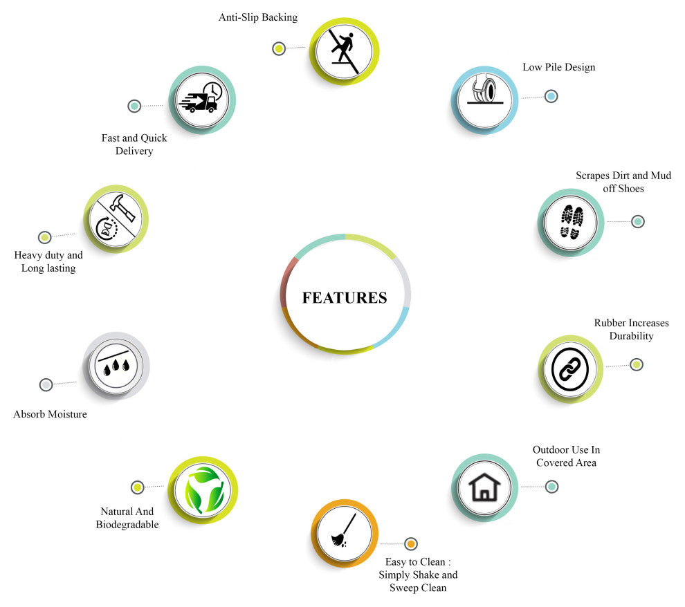 More than a decorative enhancement this rubber & coir molded doormat is made With a heavy rubber backing that anchors it in place while you brush dirt & debris from shoes & boots. The tufted coco-fiber facilitates scrubbing soles clean. Keeps your floor clean when you decorate your entryway with this beautiful doormat, which includes a sturdy rubber backing to help in keep the mat in place & prevent slips. The attractive design of this Coir Door Mat creates a welcoming entrance for your guests & the durable coir material holds up to lots of foot traffic. This Welcome Mat Recommended for outdoor use in covered areas. Vacuum or shake the mat regularly for longer life.>NEWLY DEVELOPED RUBBER AND COIR MOLDED MONOGRAMMED DOOR MAT : This is a completely newly designed door mat, suitable for both single and double doors. The large size monogrammed door mat is made of Natural Coir fiber and high quality rubber. This coir door mat has a large coir area to clean and wipe your shoes which keeps your house clean. Molded door mats are stronger and more durable lasting thrice as long as regular door mats. Each outdoor rug is QC inspected for 20 quality check points.>NATURAL COIR PILE MONOGRAMMED FRONT DOOR MAT: This Door mat is made from 100% natural coir fibers which are one of the strongest fibers and they naturally trap dust and other particles. The biodegradable coir fiber material is environmentally friendly and compostable.>HEAVY DOOR MAT WITH RUBBER BACKING: This Doormat is heavy weight with a solid rubber backing. This door mat doesn"™t get easily blown away by wind and anchors to the ground to prevent slipping>ATTRACTIVE DESIGN AND ANTI SHED TREATED FRONT DOOR MAT: This is a personalized designed door mat and every door mat is Hand monogrammed individually in the USA. The coir portion of this door mat is treated with Anti Shed dyes to minimize shedding. The rubber molded doormat easily lasts 3 times longer than usual doormats since the rubber adds to the durability making it suitable for high traffic areas.>LOW MAINTENANCE OUTDOOR MAT: Coconut coir is naturally resistant to unwanted substance, making this the most low-maintenance door mat possible.>RECOMMENDED TO BE USED IN COVERED OUTDOOR AREAS: Only for use in covered outdoor areas. Do not expose directly to rain.