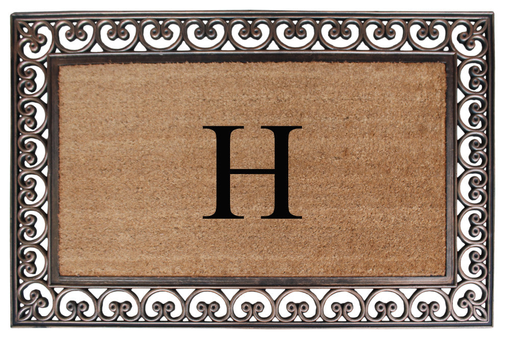 A1HC Rubber & Coir Classic Paisley Border Large Double Monogram Doormat 30X48, H