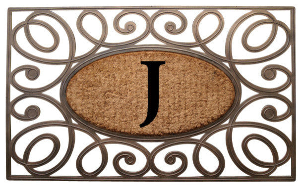 A1HC Rubber & Coir Elegant Circles Princess Doormat, Monogrammed, J