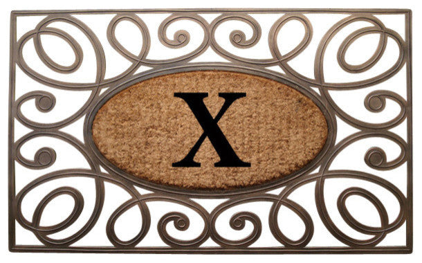 A1HC Rubber & Coir Elegant Circles Princess Doormat, Monogrammed, X