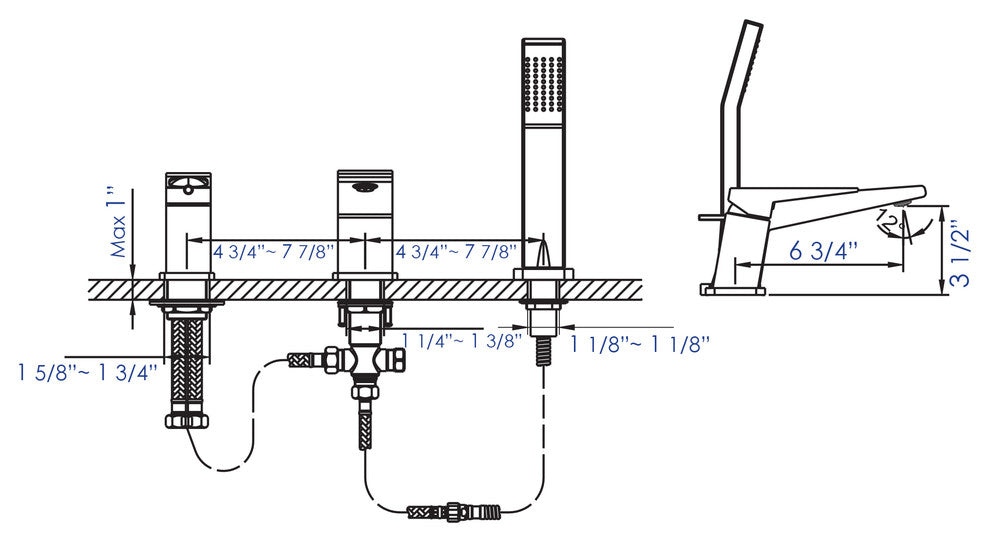 ALFI brand AB2464-BN Brushed Nickel Deck Mounted 3 Hole Tub Filler & Shower HeadIntroducing the elegance and simplicity of a deck mounted tub filler at a fraction of the price. This solid brass luxury fixture by ALFI brand is carefully crafted for long lasting durability while simultaneously complementing your modern bathroom decor, creating an eye catching addition to any tub installation. It comes in two finishes to accommodate your bathroom style, polished chrome and brushed nickel.