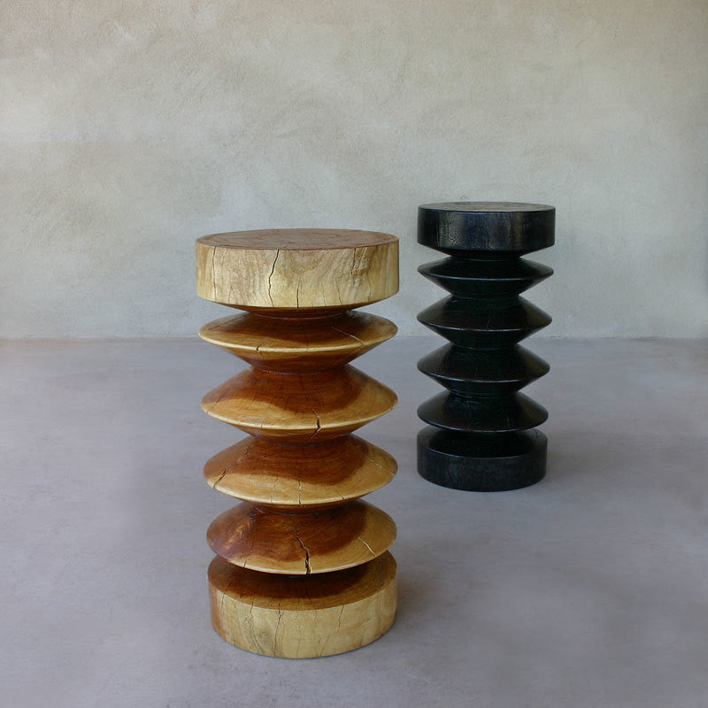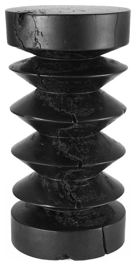 Sold As 1 UnitEye-catching simplicity abounds in an elegantly shaped turned wood stool table that references traditional geometric forms often seen in ''primitive'' African art. Cracks inherent to the wood add further to its natural character. Artisans in India turn solid Margosa "“ a dense tropical wood "“ on a lathe, shaping by hand. It will be sanded and finished at our workshop in New Mexico, USA, and shipped to you within 14 days of receipt of your order.-Key Features:Margosa Wood - a dense tropical hard wood from India. Our Margosa wooden designs are seasoned in a solar kiln, developing organic cracks and separations as the wood dries and shrinks. Time may accentuate these separations, or generate new ones. This movement is considered inherent to the natural beauty of the design.11 dia x 22 H inches (expect some variation)55 lbs (expect some variation)Flat glidesExclusive to Pfeifer StudioMade in India; finished-to-order in the USADried in a solar kilnWipe with a soft, dry cloth to clean. To protect finish, avoid the use of chemicals and household cleaners.