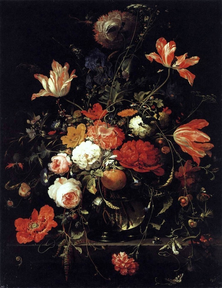 Abraham Mignon a Glass of Flowers and an Orange Twig Canvas Print