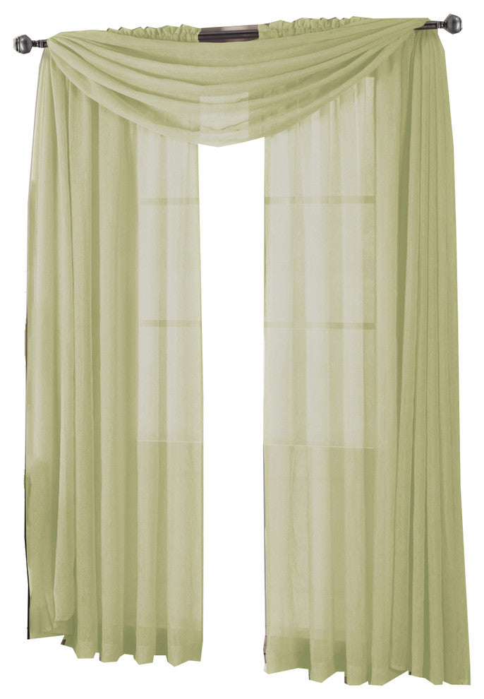 Want your privacy but need sunlight? These crushed sheer panels can keep nosy neighbors from looking inside your rooms, while the sunlight shines through gracefully. Add an elusive touch of color to any room with these lovely panels and scarves. Sheers enhance the beauty of windows without covering them up, and dress up the windows without weighting them down. And this crushed sheer curtain in its many different colors brings full-length focus to your windows with an easy-on-the-eye color. •100% Polyester•Crushed Sheet Window Panels•Provides privacy without blocking sunlight•Sold individually as single panel or single scarf •May be used with/without the scarf •Machine-washable Easy CareAvailable Sizes Include (Not a Set, each package contains only one curtain panel or one valance)•50 " wide x 63 " long each panels•Panels 50 " wide x 84 " long each panels•Panels 50 " wide x 96 " long each panels•Panels 50 " wide x 108 " long each panels•50 " wide X 216 " long each scarfCare Instructions This Rod pocket crushed sheer curtain panels are Machine-Washable separately in cold water. Gentle cycle. No bleach. Tumble dry at low settings. Warm iron if needed.