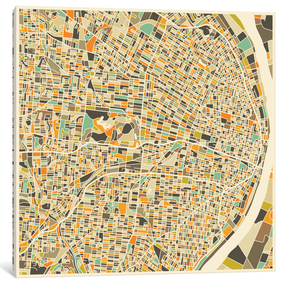 "Abstract City Map of St. Louis" by Jazzberry Blue, 18x18x1.5