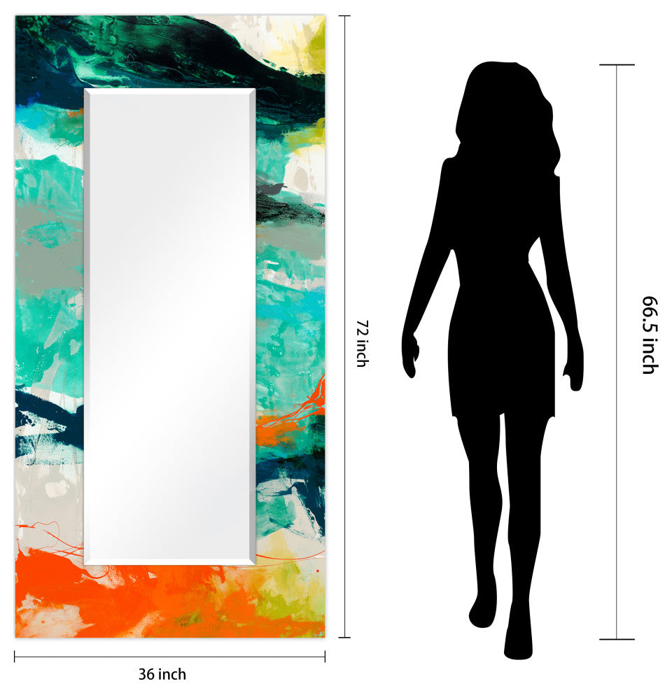 Abstract Rectangular Beveled Wall Mirror on Free Floating Printed Tempered Glass
