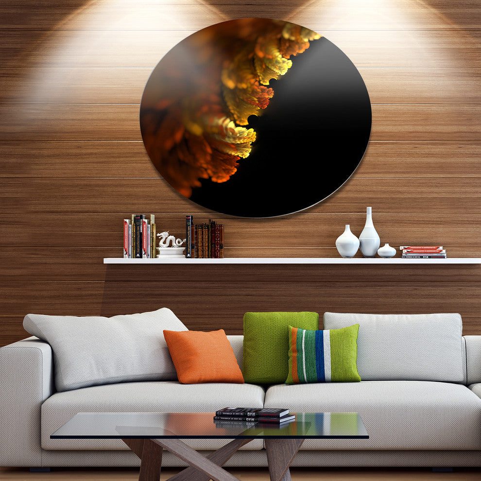 Bring Contemporary Abstraction to your home with this large Circle Metal wall art. This Abstract Yellow Flower on Black Metal Artwork makes it the focal point of any room or office.