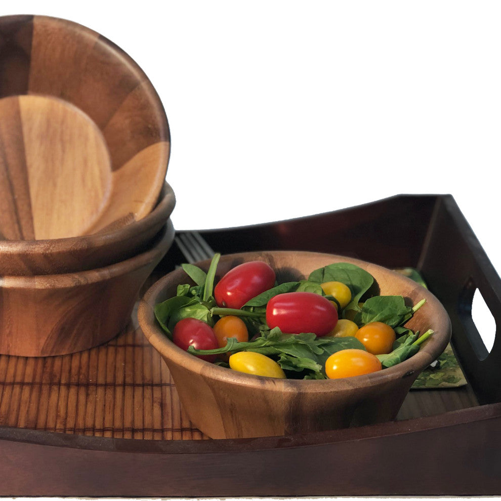 Acacia Wood Individual Salad Bowls, Set of 4