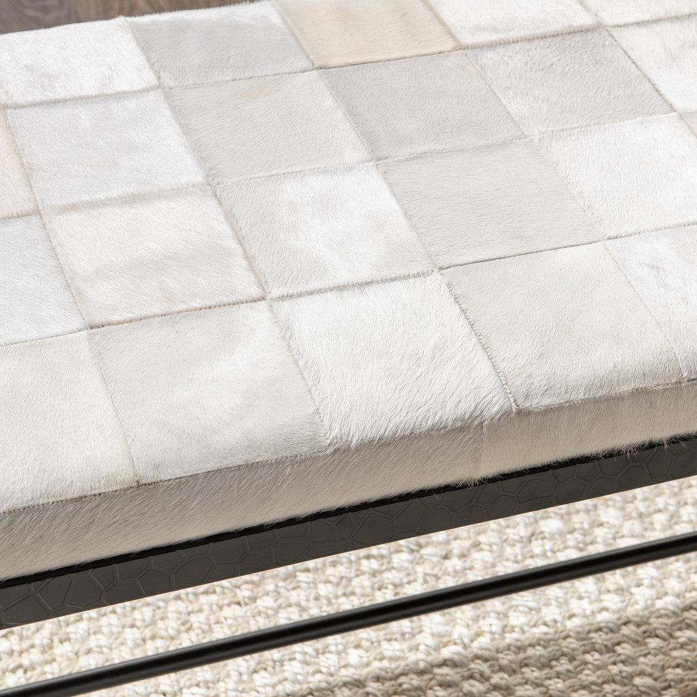 Achen Leather Hide Ottoman Bench by Kosas Home , Ivory, 60"
