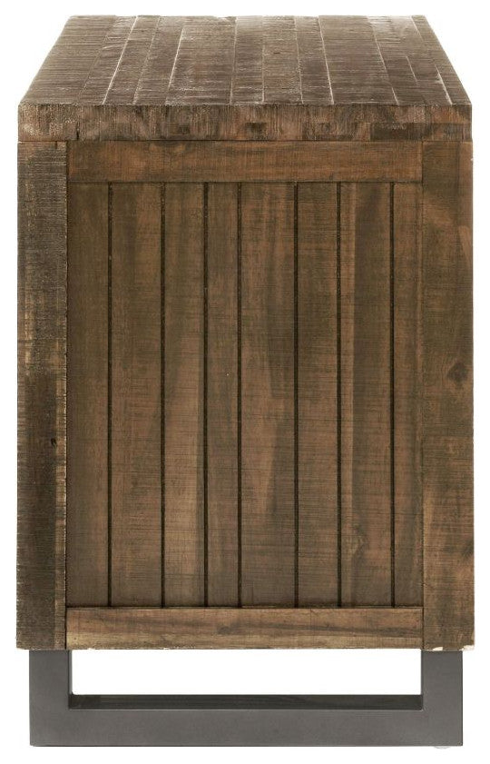Description: The Andria collection was created to address a trending style in today''s market while adding some transitional feel by bowing the inset drawers. Use of the slats in the center of the drawer and hardware to match the slats creates a uniform design element. The metal legs modernize the collection throughout. Finish: Reclaimed Oak FinishMaterial: Wood,Wood (Acacia)Features: 3 Drw Casegood Drawer: Side Metal Glide Drawer, English Dovetail Drawer, Felt Lined Top Drawer, Hardware: Metal Assembly Required: YesAttribute: 3 DrwDrawer: GLIDE Side Metal (3 Ball Bearing), Dovetail English, Felt Lined Top Drawer, Hdw: Single Handle Metal (Raised/Recessed Grooves)Metal Sled Leg: NickelProduct Dimensions: 28"L x 18"W x 28"H
