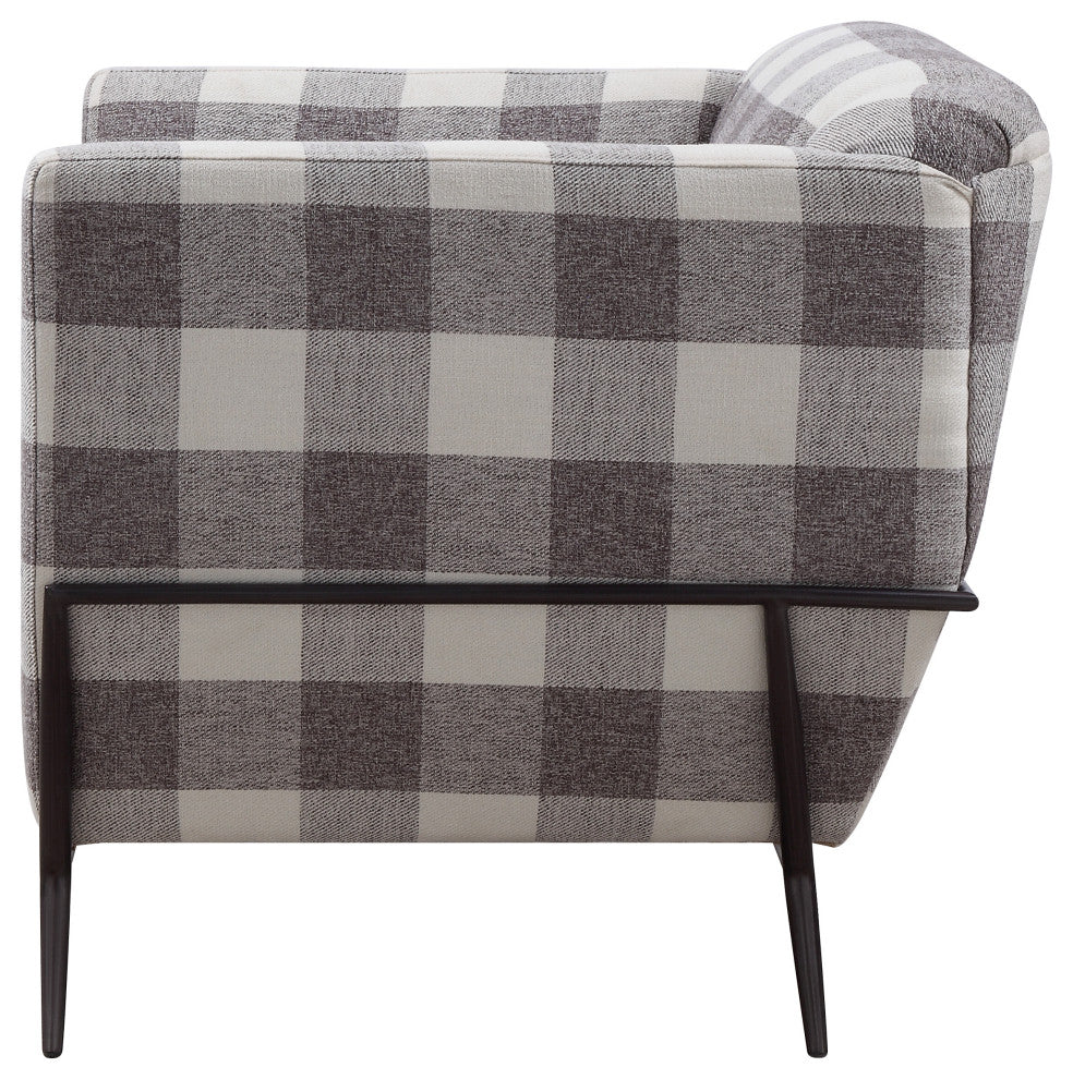 The Niamey II accent chair features a padded back and seat cushion with checkered fabric pattern, and black metal legs. Create an elegant and sleek contemporary style that is ideally suited for any living room environment.Features:• Tight Back and Seat Cushions• Full Foam Seat• Wooden Inner Frame• Slightly Flared Armrest • Finish: Pattern Fabric & Metal Frame Black Finish• Material: Upholstery, Metal LegDimension:Product Dimensions: 32"L X 32"W X 31"HNet Weight: 60 lbsPackage Dimensions: 34.65"L X 34.65"W X 34.25"HGross Weight: 68 lbsPackage Type: ISTA-3AShip Type: LTL• Assembled