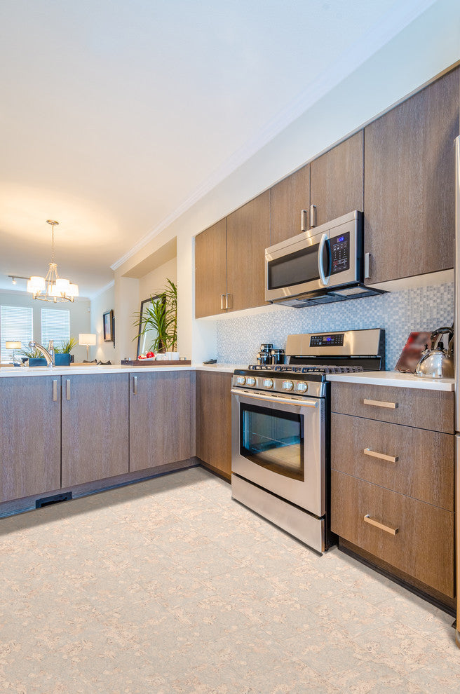 Art can be anywhere, even underfoot and we feel Sky cork tiles, elegant pattern and tones, elevate it, to the status of masterpiece. With large cork pieces, surrounded by a sky of blue swirls, it conjures memories of simpler summer days. Design elements include 4 coats of a matte finish, square edges and lifetime limited residential warranty.