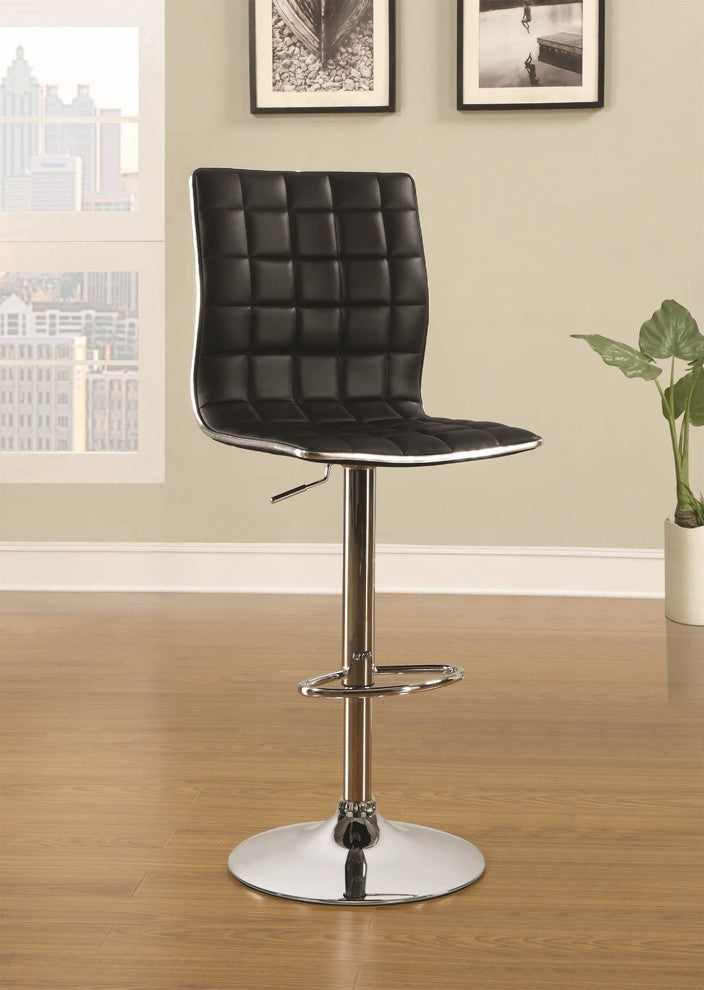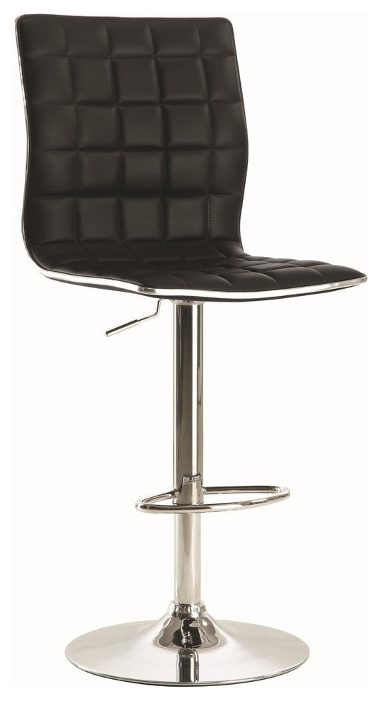 Add a fun and funky look and feel to your dining and entertaining area with this adjustable bar stool. Crafted with a modern chrome base, it has a footrest for convenience and comfort. The seat and seat back are upholstered in a waffle texture that bring visual depth and dimension to the stool''s design. An adjustable lever allows you to adjust the seat height from 40.75" to 49" to best suit your needsAssembly Required: Yes Dimensions: Width: 18" x Depth: 18" x Height: 40.75" - 49"
