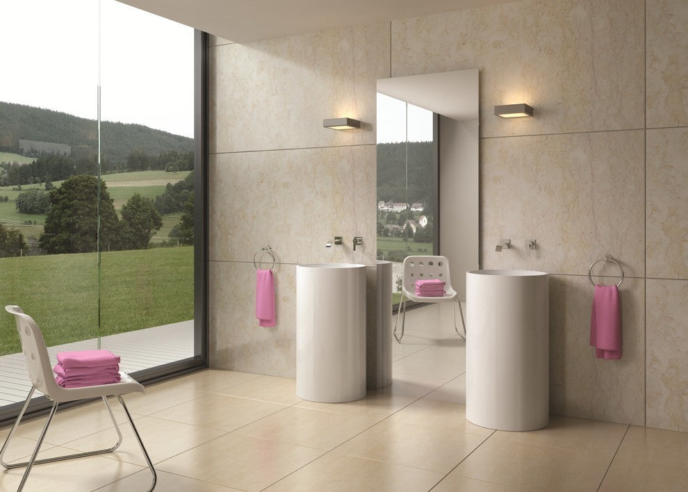 The DW-108 is a circular shaped design model within the ADM Bathroom Design freestanding sink collection made of durable white stone resin composite with a contemporary style design and its pinnacle of being smooth. The stone resin material comes with the option of matte or glossy finish. This pedestal sink will surely be a great addition with a neat and modern touch to your newly renovated stylish bathroom.