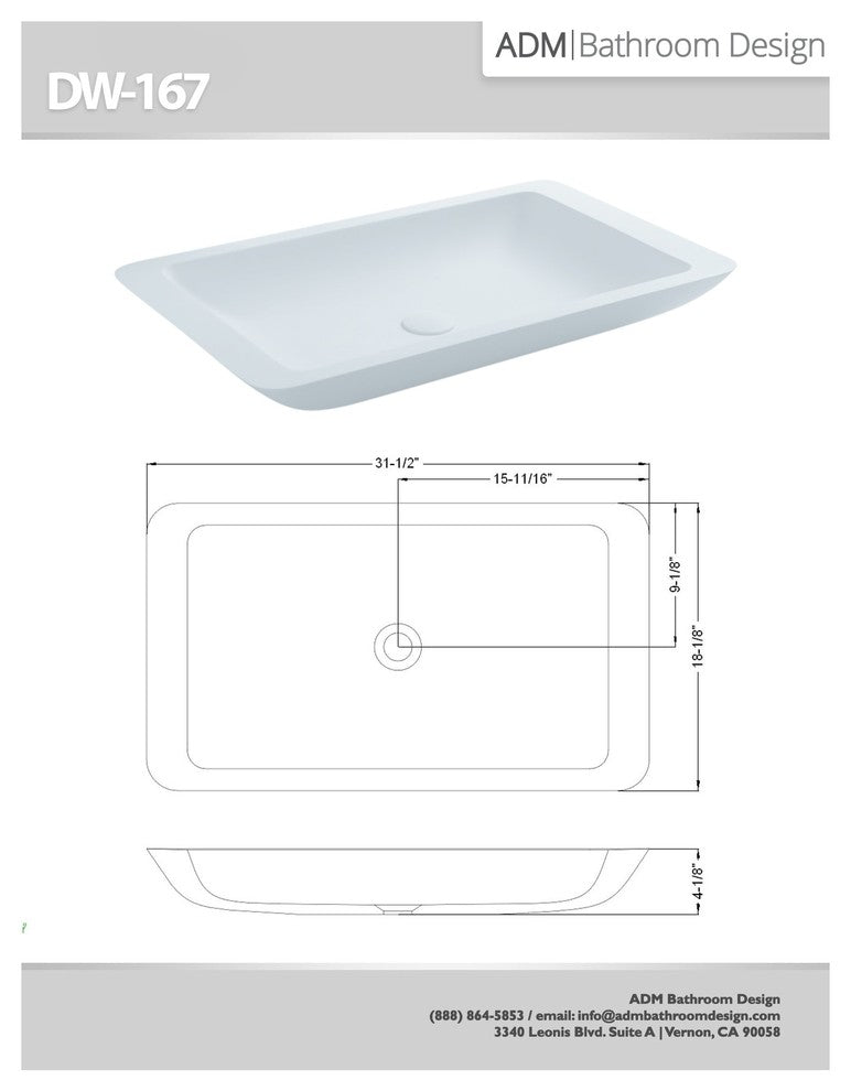 The DW-167 is a great looking sink made of durable white stone resin composite with a rectangular shape and contemporary style design. The stone resin material comes in a matte and glossy finish. This counter mounted sink will surely be a great addition to your already stylish bathroom. This sink will add a neat and modern touch to your new renovation with its elegance and high-quality construction.