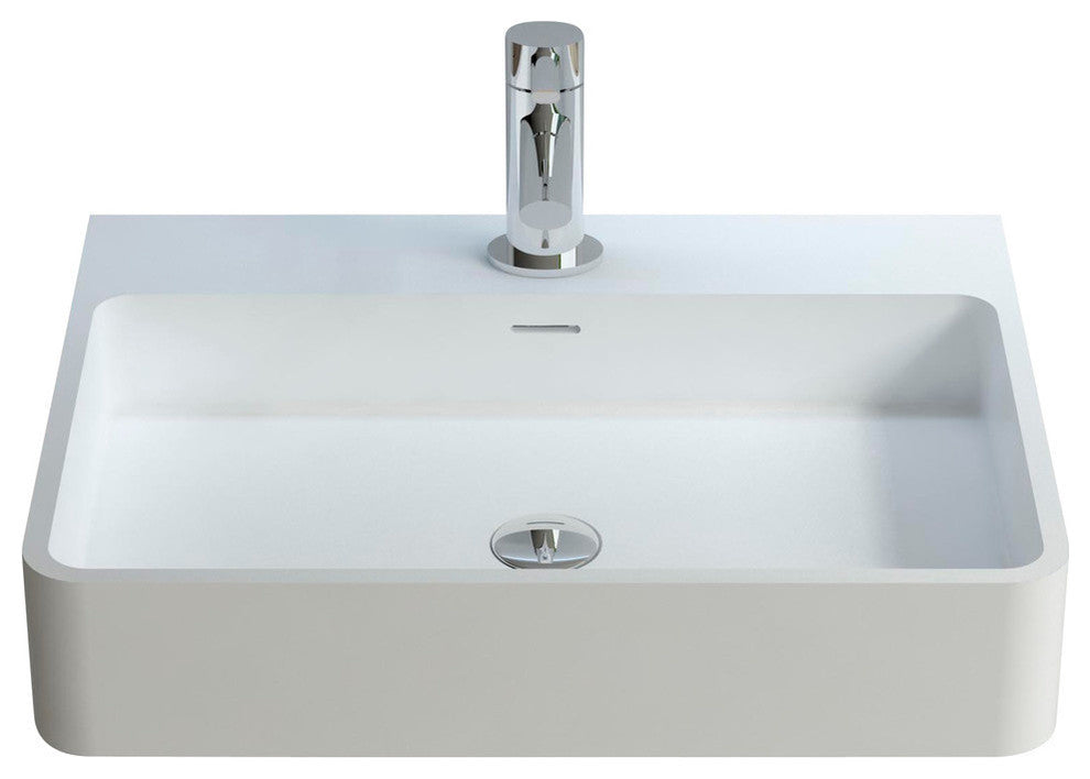ADM Rectangular Wall Mounted Countertop Sink, White, 24", Matte White