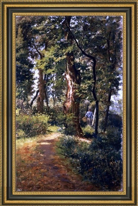 16" x 24" Adolfo Tommasi in the Woods framed premium canvas print reproduced to meet museum quality standards. Our Museum quality canvas prints are produced using high-precision print technology for a more accurate reproduction printed on high quality canvas with fade-resistant, archival inks. Our progressive business model allows us to offer works of art to you at the best wholesale pricing, significantly less than art gallery prices, affordable to all. This artwork is hand stretched onto wooden stretcher bars, then mounted into our 3 3/4" wide gold finish frame with black panel by one of our expert framers. Our framed canvas print comes with hardware, ready to hang on your wall. We present a comprehensive collection of exceptional canvas art reproductions by Adolfo Tommasi.