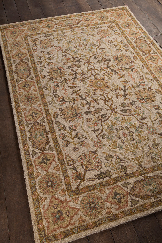Update the look of your living room, bedroom or entryway with the Adonia Traditional Area Rug from Chandra. Hand-tufted by skilled artisans, this rug features authentic craftsmanship and beautiful hues of cream, gold, brown and green. The rug has a 0.75" pile and is sure to make an alluring statement in your home.