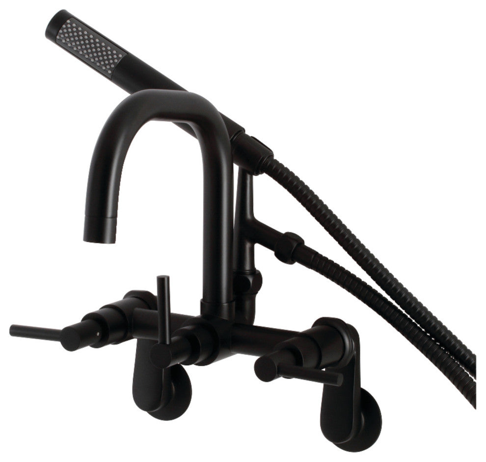 Wall mount clawfoot tub faucets are the perfect fixture to add decorative flair within your bathroom because of their unique architectural elements. With sleek design, this will complete your refined bathroom decorum with the help of its premium matte black finish and contemporarily styled handheld shower. The solid brass construction also makes for a heavy, quality made product.