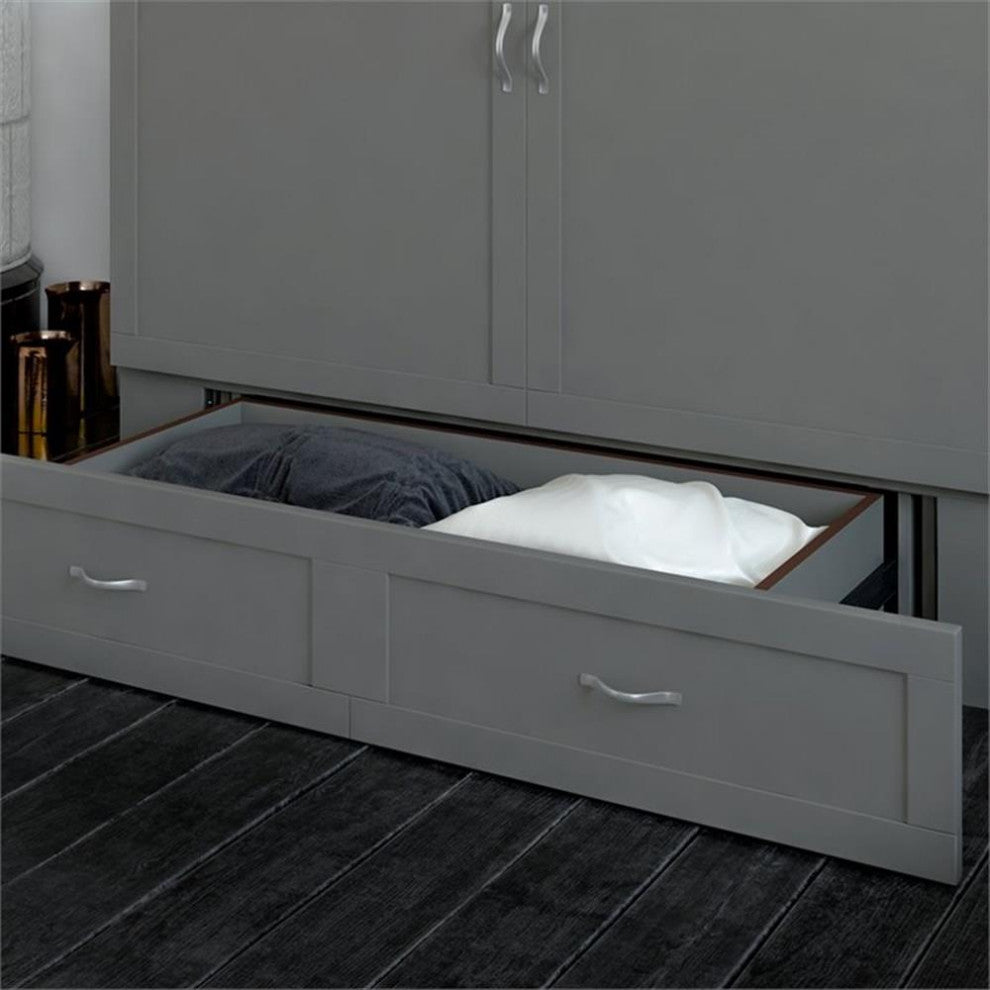 Elevate your living space with the Hamilton Murphy Bed Chest: The epitome of modern functionality and style. Available in chic white, warm walnut, contemporary grey, and mid-century modern light toffee, this chest seamlessly complements any decor. Choose from sizes Twin XL, Full, or Queen to suit your needs. Unveil a world of convenience as this sleek chest effortlessly transforms into a comfortable bed. The minimalistic panel design exudes a minimalist aesthetic while maximizing space. Crafted from solid hardwood, the Hamilton Murphy Bed Chest is a testament to durability and finesse. Enjoy the convenience of a built-in charging station and a spacious storage drawer, all while relishing the comfort of the included 6 inch mattress with memory foam. Redefine your space, rediscover comfort, and reimagine convenience with the Hamilton Murphy Bed Chest!Features: • Seamless Transformation: Enjoy unmatched convenience with this stylish solid wood and veneer chest that seamlessly transitions into a cozy bed, optimizing your living area within moments • Mattress Included: Arrives with a Queen Size 6" CoolSoft, Gel-Infused Memory Foam Fold-A-way Mattress • Elevate Your Comfort: Our Fold-A-Way mattress boasts a luxurious combination of 1-inch aerated foam topper, 2 inches of Cooling Gel foam, and 3 inches of highly resilient support foam for your ultimate relaxation • Included Storage Drawer: Extra-large drawer for storing your blankets and pillows • USB Charging Station: Built-in Power Source with 9-foot cord and 2 USB Ports. • Assembled Dimensions (OPEN): 80.13"L x 62.5"W x 40.75"H • Assembled Dimensions (CLOSED): 24.38"L x 62.5"W x 40.75"H • Drawer Dimensions: 40.75"W x 17.25"D x 8"H • Weight Capacity: 800 lbs. • No Mounting RequiredSpecifications: • Product Weight: 319.2 lbs • Material: Solid Wood • Included: Built-In Charger • Color/Finish: Grey • Assembly Required: Yes • Bed Weight Capacity: 800lbs