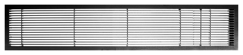 The AG10 linear bar grille is eco-friendly and has a fixed zero deflection that is suitable for floor, ceiling, wall, window sill and countertop applications. Featuring an aesthetically pleasing continuous length appearance, it surpasses architectural wants and engineering needs that require both design and high engineering performance. The AG10 Green Bar Grille is an advanced premium quality and sustainable product from Architectural Grille that is environmentally responsible.
