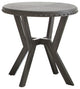 Mixed media and geometric designs combine in a soft gray palette for the Alamo Occasional tables. The Alamo End Table is constructed of paulownia veneers in a gray finish with a gray metal base with black hand brush accents. The table features a round parquet veneer top with a decorative metal rim accented by the unique geometric metal base. Also available for purchase separately is the matching cocktail table. Your purchase includes one end table. Feautres:Alamo Round End Table, 24" x 24" x 24"Gray finished paulownia veneers and metal baseQuartered square pattern on table topsMetal table rim with exposed rivet lookGeometric metal base features a grey finish with black hand brushed accents