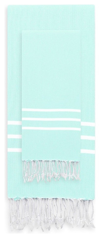 Alara Turkish Pestemal Hand Towels, Set of 2, Soft Aqua, B