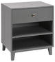 With clean lines and a solid gray finish, this Alexander Top Drawer Side Chest has a sleek, modern feel. Its two shelves and top drawer offer ample storage space. Made in USA.