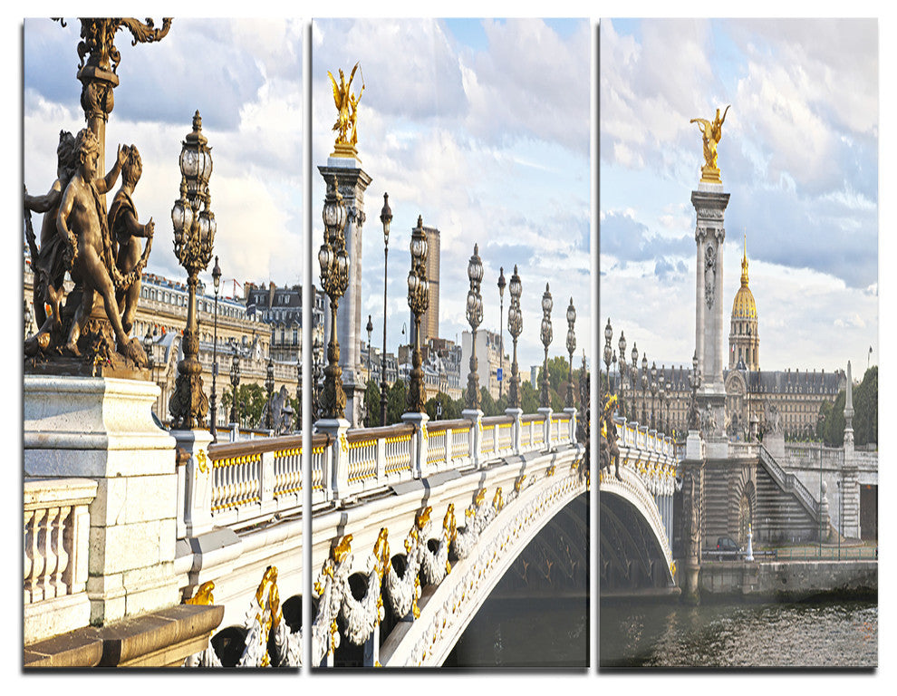 "Alexandre III Bridge Panoramic View" Photo Metal Wall Art, 3 Panels, 36"x28"