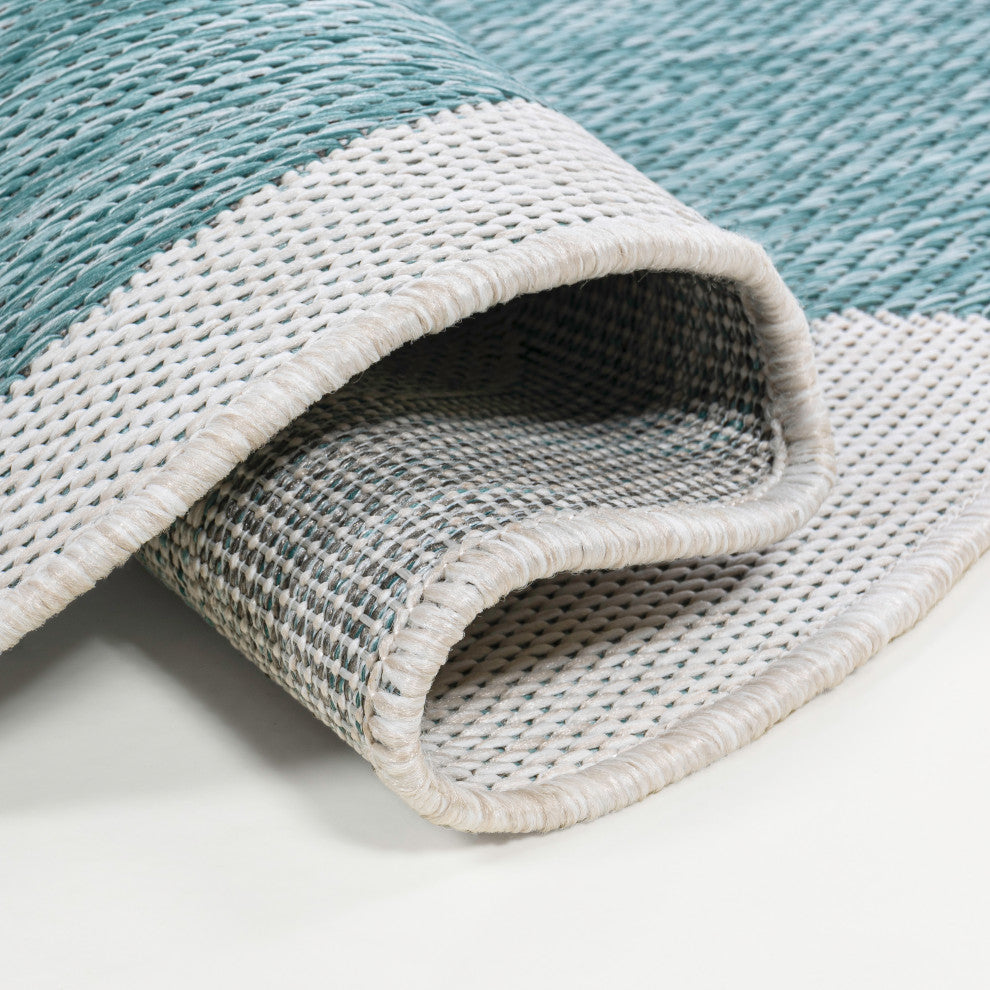 In classic cottage style, this charming indoor/outdoor rug features a scalloped edge and two-toned color scheme. Use it outdoors on a porch, or in the living room, entry, bedroom or dining room. Woven from synthetic fibers, this easy-care rug is family-friendly and durable.Features:• Transitional flat-woven design is just 0.15" thick• Turquoise rug is framed in a traditional scalloped cream-colored border• Durable woven construction is made from easy-care outdoor polypropylene• 100% Polypropylene• No backing, use of rug pad is recommended (sold separately)• Power Loomed in Turkiye• Actual Dimension: 8 ft. 8 in. x 12 ft.• Color: Turquoise/Cream• Thickness measures: 0.15 in.• Available in multiple sizes and/or colorsRug Care:• Vacuum regularly and spot clean as needed; avoid direct and continuous exposure to sunlight; use brushless vacuum; remove spills immediately; if liquid, blot with clean, undyed cloth by pressing firmly around the spill to absorb as much as possible; for hard to remove stains, professional rug cleaning is recommended; store in a dry, well ventilated area and rotate for consistent wear• Packing and shipping may cause temporary creases in rugs, which will flatten out after a week on the floor; to expedite the process, try back-rolling your rug before laying it down, and then allow ample time for the remaining creases to relax• Please Note: Due to differences in monitors, some rug colors may vary slightly. Lengths and widths may vary from the published dimensions. Patterns may vary slightly according to shape and size selected.About us:Style your floors with JONATHAN Y. By combining fine craftsmanship and design, this New York creative studio is bringing fashion to your floors. The collection mixes sustainable organic materials, vibrant colors and trend worthy styles to create JONATHAN Y''s distinctive catalog of rugs.